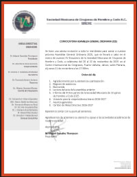 Se hace una atenta invitación a toda la membresía para asistir a nuestra próxima Asamblea General Ordinaria 2025, que se llevará a cabo en el marco de nuestro XV Encuentro de la Sociedad Mexicana de Cirujanos de Hombro y Codo, a celebrarse del 20 al 22 de noviembre de 2025 en el Centro Internacional de Congresos, Puerto Vallarta, Jalisco, en: