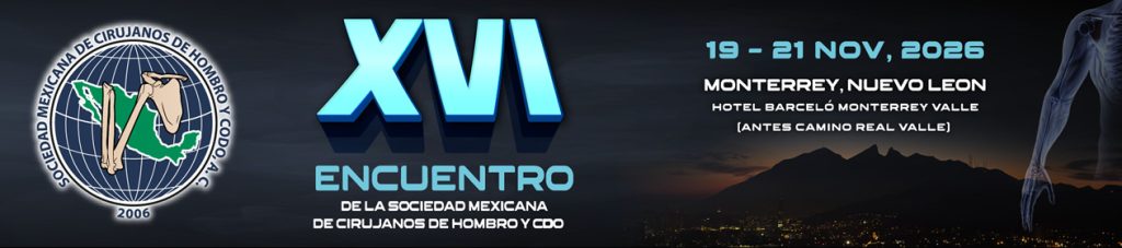 Es un honor invitarles a participar en el XIV Encuentro de la Sociedad Mexicana de Cirujanos de Hombro y Codo, que se llevará a cabo del 19 al 21 de noviembre de 2026, en la ciudad de Monterrey, Nuevo León, teniendo como sede el Hotel Barceló Monterrey Valle.